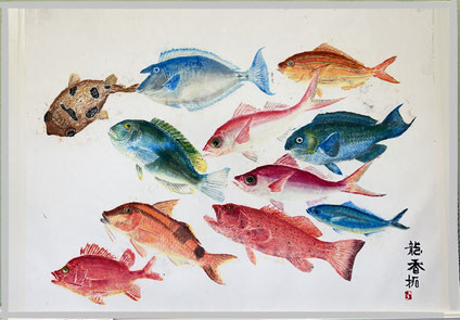 「深海生物の魚拓ギャラリー」ブースで深海生物魚拓合計110点を展示しています。